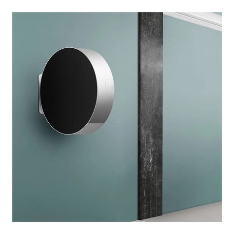 Bang & Olufsen Beosound Edge højttaler i sort. Rund højttaler med sort front og metalramme. Kan anvendes som fritstående eller vægmonteret højttaler afhængigt af tilbehør og opsætning. Velegnet til brug i stue eller andre opholdsrum som del af et Bang & Olufsen lydsystem