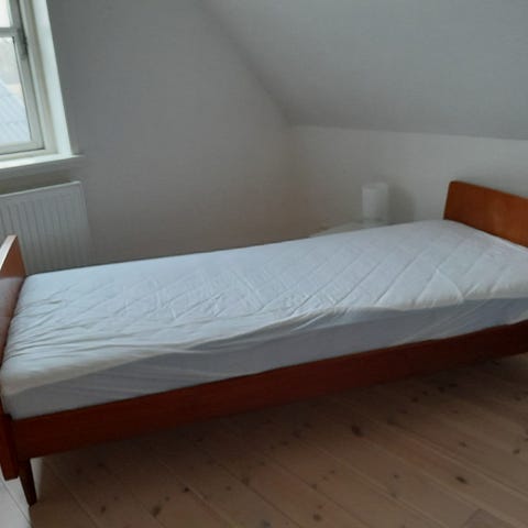 Soulmate madras – 5 zonet pocket fjedre medium, 90 X 200 cm (nypris kr. 4000). Der har altid været en 6 cm topmadras på sengen, så der er aldrig sovet direkte på madrassen