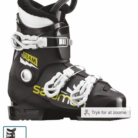 Salomon Børne skistøvler i sort med to justerbare spænder over vrist og skaft. Indersiden har blødt foer for øget komfort og varme. Sålens længde er angivet til 240 mm. Støvlerne er velegnede til alpint skiløb og passer til standard alpine skibindinger.