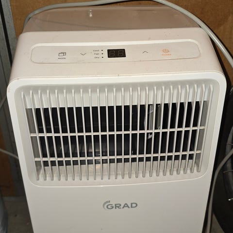 Hvid elektrisk luftbefugter til indendørs brug. Enheden står på gulvet og tilsluttes med ledning. Velegnet til at regulere luftfugtighed i rum, f.eks. stue, soveværelse eller kontor. Simpelt design med gitter på toppen og betjeningsknap med lysindikator.