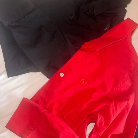 1 stk. skjorte i lyse pastelfarver og med overlomme.