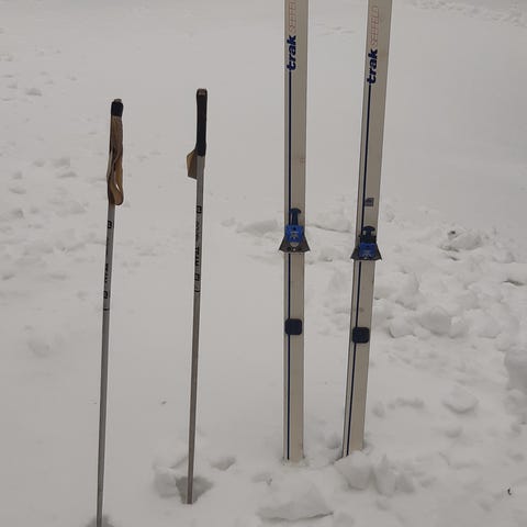 OBS skiene kan bruges uden ski støvler, da wiren blot strammes bagom sko/støvle.
