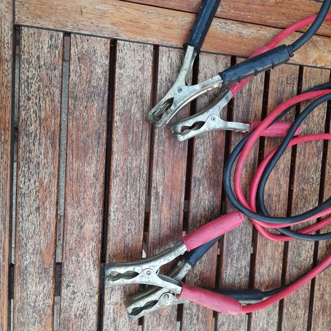 Startkabler til bil, rød/sort i praktisk opbevaringstaske