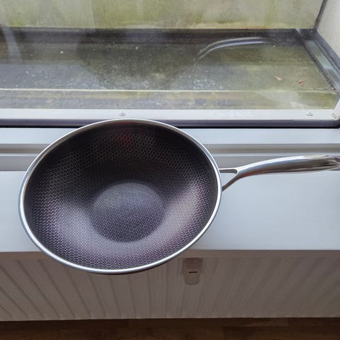 1 wok og 2 stegepander fra Onyx inkl. låg som passer både til wok og den store pande + grillhandske og silikone-håndtag. Alt er i rigtig god stand. Sælges samlet.