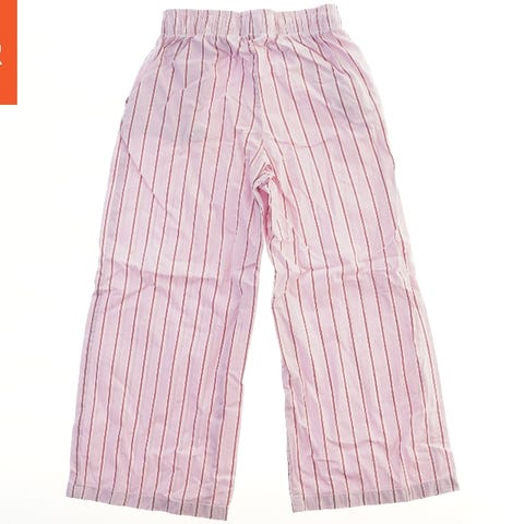 Bukser med elastisk talje og smalt ben. Designet har et detaljert blomsterprint med flamingoer og grønne blade på en lyserød baggrund. Der er lommer på siderne.