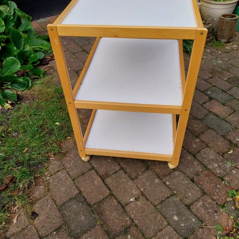 Transportabel bakkebord med 3 hylder flot stand H 93 Ø 38 cm