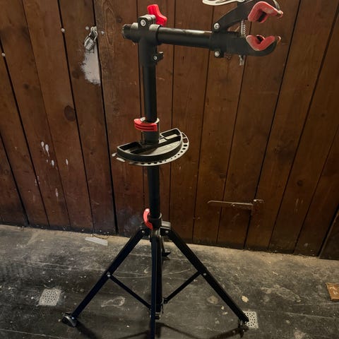 Cykel reparationsstativ med justerbart stativ og værktøjsbakke