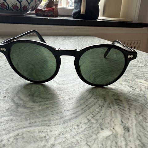 Moscot solbriller til unisex med metalstel i guld og mørke glas. Stellet har tynde stænger med skildpaddefarvede ender. Klassisk facon egnet til både hverdag og brug i solen. Velegnet til voksne i unisex-design.