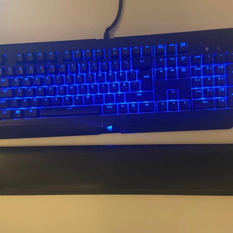 Razer BlackWidow mekanisk tastatur i sort. Tastaturet er udstyret med aftagelig håndledsstøtte for mere komfort ved længere tids brug. Yellow switch, US layout. Brugt ~ 20 timer. Jeg har den officielle boks