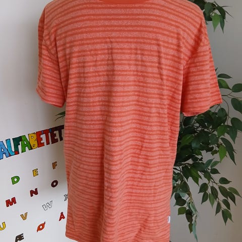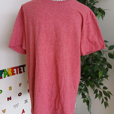 M8. Rød T-shirt med lyse striber fra Lindbergh White. Den har en rund hals og korte ærmer. Er i 60% cotten og 40% polyester.