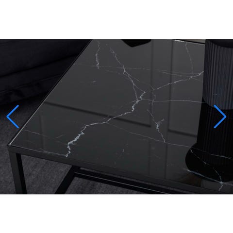 Sofabord sæt bestående af to borde med mørk stenplade og sorte metalben. Bordene har rektangulær form og kan placeres sammen eller hver for sig. Overfladen har et marmor overflad med synlige strukturer i materialet, og stellet er enkelt og lige i designet, hvilket gør sættet egnet til brug i stue eller opholdsrum som sofabord eller sidebord.