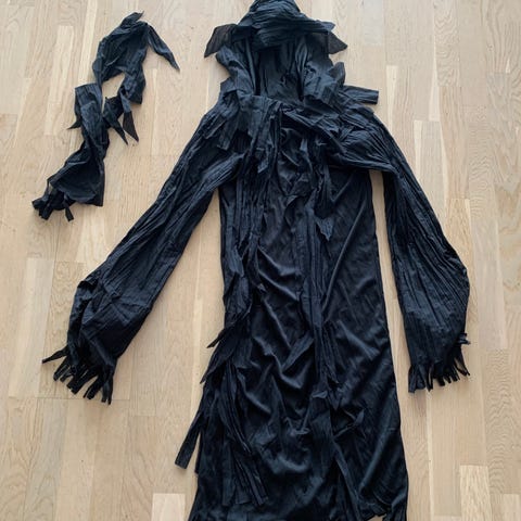 Skelet kostume heldragt i sort til unisex i størrelse 128. Dragten er fremstillet i EVA og polyester og har print og påsyede skeletdetaljer på forstykket, arme og ben. Bagsiden er ensfarvet sort. Kostumet er egnet som udklædning til fx fastelavn eller halloween. Vaskes og vedligeholdes efter anvisningerne på mærket.