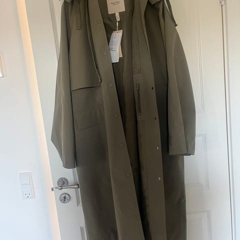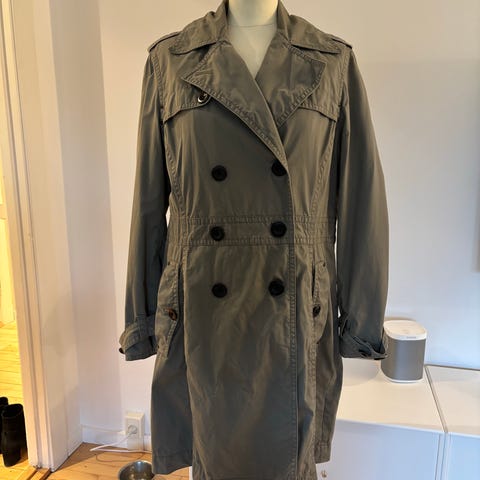 Klassisk trenchcoat fra Part Two med lommer i siderne med knaplukning og bindebånd i taljen. Ternet for. Størrelsen er normal. Jeg har kun brugt jakken få gange og sælger den, fordi jeg ikke får den brugt.