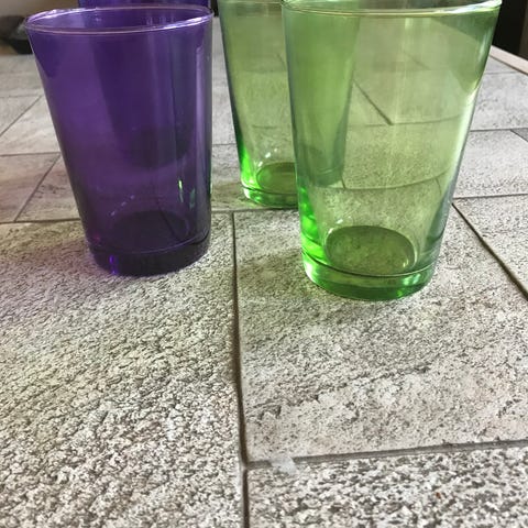 Glasrude blyindfattet med farvet mønstret glas gul blå brun