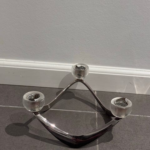 Stelton lysestage i rustfrit stål med tilhørende cylindrisk glasoverdel. Basen er i metal, mens den klare glasdel placeres ovenpå og beskytter lyset. Velegnet til bloklys eller fyrfadslys afhængigt af størrelse. Simpelt, cylindrisk design, der kan bruges som borddekoration eller stemningslys i hjemmet.