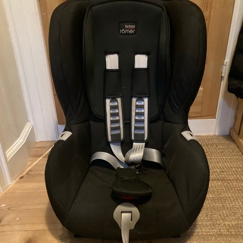 Britax Römer KING ll autostol. Autostolen har sort polstring og lys grå skal. Udstyret med intern 5-punktssele og justerbar hoved- og nakkestøtte. Og kan justeret fra at sidde til ligge. Egnet til montering i bilens sæde med bilens sikkerhedssele. Velegnet til børn fra 9 md. - 4 år.