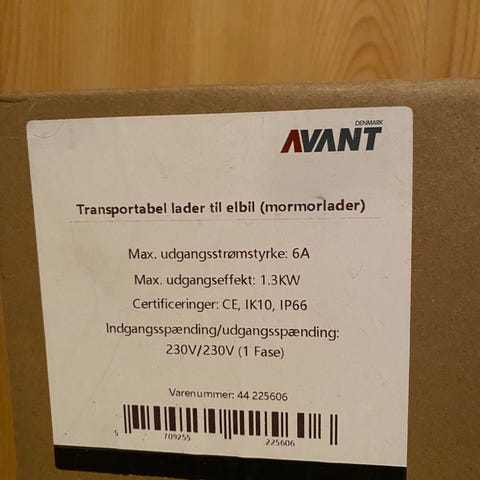 Bærbar nødlader i praktisk taske. Lader med 6 ampere (ca. 1,3 kW). Kun brugt meget få gange.