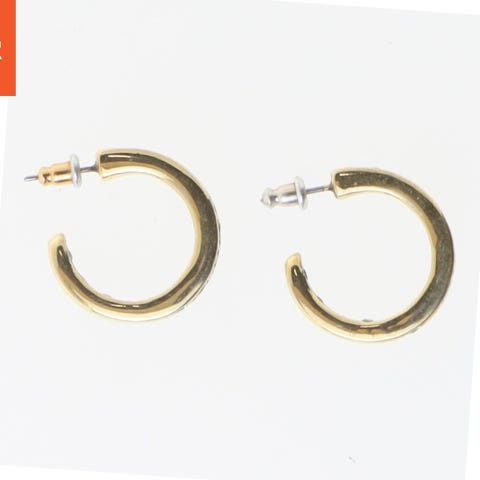 Et par øreringe med kæde-design i en gylden farve. Øreringene har en længde på cirka 2,5 cm og har en enkel, elegant stil med post-lukning til sikker fastgørelse. De har en poleret overflade, der tilføjer et skinnende udtryk til designet.