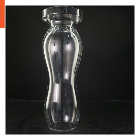 Høj og slank lysestage lavet af klart glas. Stagen har en rund, stabil bund og strækker sig op i en elegant form, der holder lyset sikkert. Dimensionerne er Ø 10x35 cm.