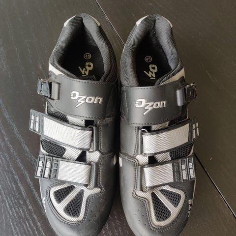 Skoene er udført i sort og grå med røde detaljer og har tre velcrolukninger over vristen. Overdelen er i syntetisk materiale med mesh-paneler for ventilation. Ydersålen er udstyret med mønster og gevindhuller til montering af klamper til klikpedaler. Velegnet som cykelsko til brug med kompatible klikpedalsystemer.