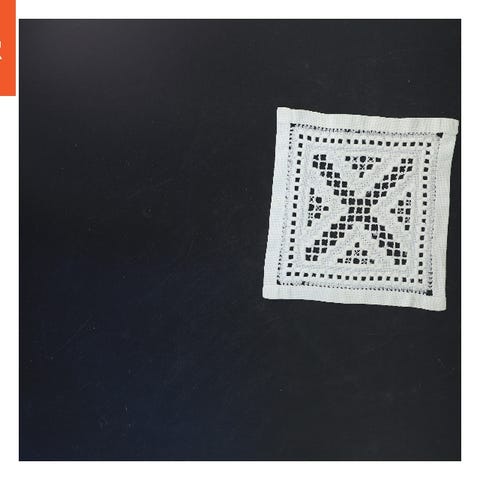 Denne hvide dug måler Ø 57 cm og er broderet med hedebosyning.tekstilmateriale med indviklet broderet design, der fremhæver en elegant og traditionel stil. Tags: dug, tekstil, broderet