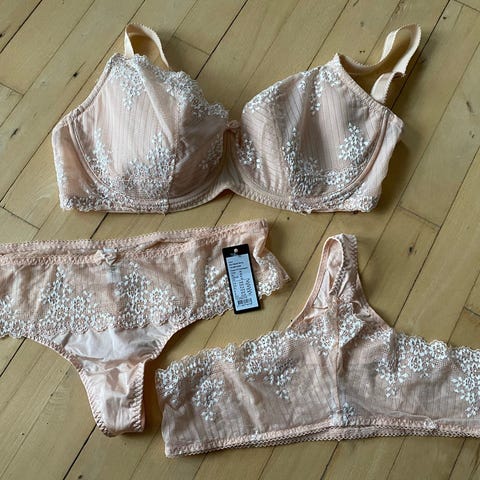 BH/trusser, Charade / Change , str. 70I og 40, Lysegrå, God men brugt, Fint sæt fra Charade / Change med hipster string og fullcup bh.
