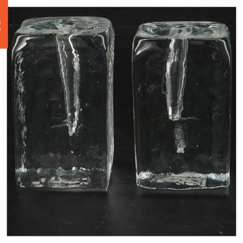 Et par klare glaslysestager med en moderne og geometrisk design. Lysestagerne er trekantede ved bunden og strækker sig op til en lige, smal top, der giver en stilfuld og elegant look. De er ideelle til at holde taperede lys og vil tilføje et sofistikeret touch til ethvert hjem.