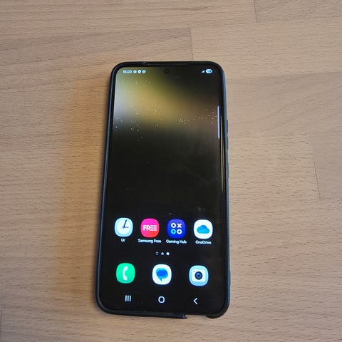 Telefonen fungerer problemfrit og er klar til en ny ejer. Der er Panzerglas på forsiden.