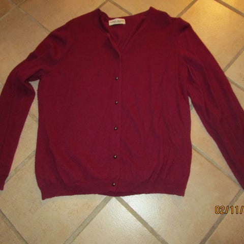 Helt ny cardigan, Helt ny Margit Brandt, str. XXL. Passer også str.42. Bordeuxrød (som påbill.2) , 60wool- 40 cashmere , Ubrugt, Smuk lækker cardigan med de fineste perleknapper.