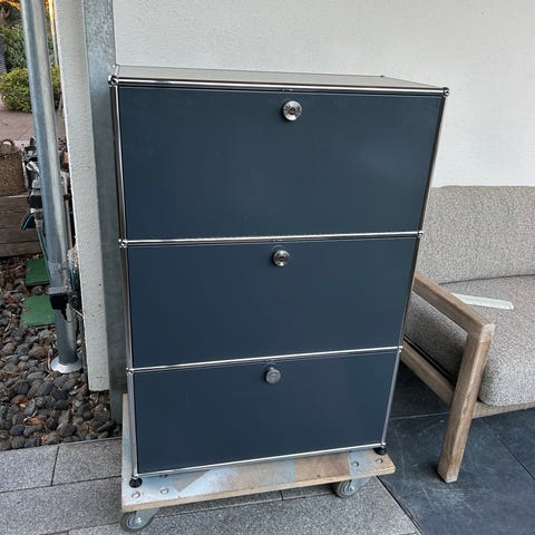 Overvejer at sælge vores USM Haller skab som vi har brugt som TV bord. Man kan skille den ad og omfigurere den så lågerne er placeret anderledes eller at den er 3 fag lang og 1 høj alt efter hvad man har behov for.