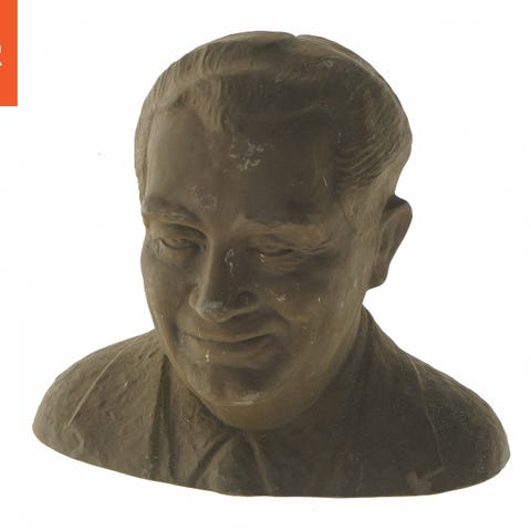 Denne buste fungerer som en sparegris. Den er lavet af keramik og har en åbning i toppen til indkastning af mønter. Bunden har en åbning til fjernelse af mønter med en skrift, der angiver oprindelse og udstedelse i 1979. Under bunden står der 'Årets sparemand Hilmar Baunsgaard'. Størrelsen på denne buste er 18x21 cm.