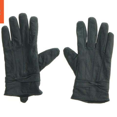 Denne par handsker er lavet af lyse læder og har en længde på 23 cm. Designet inkluderer en struktureret stofdetalje, der løber over fingrene og håndfladen på hver handske. Handskerne har et klassisk og enkelt design, der giver et tidløst look.