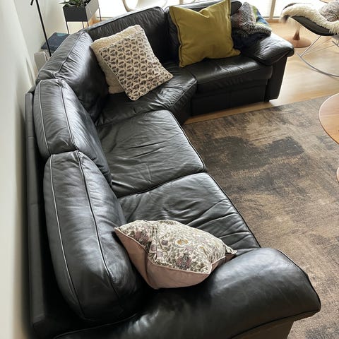 Hjørnesofa, sort , ægte læder