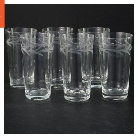 Sæt bestående af seks gennemsigtige glas, hver med et indgraveret mønster. Glassene har en diameter på 5,5 cm og en højde på 10 cm. Velegnet til servering af diverse drikkevarer og til brug i både formelle og uformelle sammenhænge.