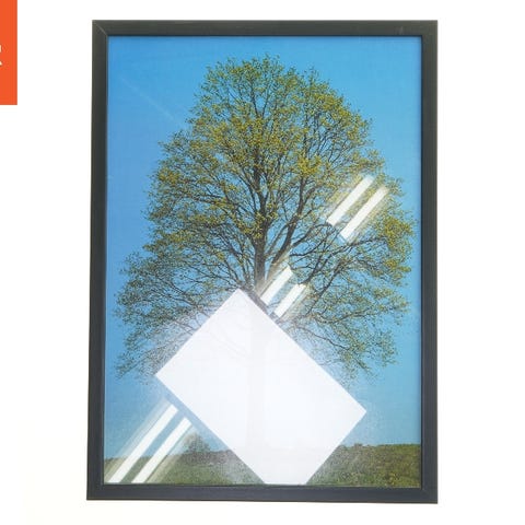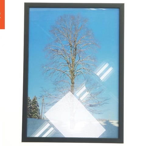 Denne genstand er et billede af et træ, der står på en mark under en klar blå himmel. Billedet er indrammet i en sort ramme. Bagpå ses en opklæbet etiket fra Posterland samt kroge til ophængning. Billedets størrelse er 30x42 cm.