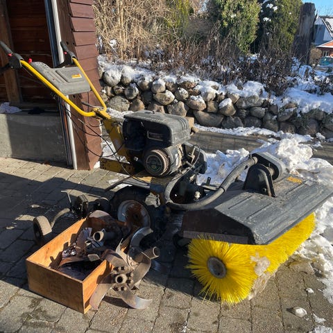 Med solid Kawasaki benzin motor Maskinen er selvkørende. Roterende kost med opsamlerkasse, som kan bruges til fejning af fx gårdspladser, indkørsler og andre udendørs arealer eller snerydning uden opsamlerkasse