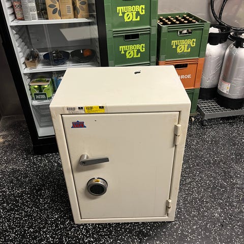 Pengeskab / metalskab i grå metal. Skabet har frontlåge med håndtag og nøglehul samt kraftige hængsler i siden. Indvendigt er der et rummeligt opbevaringsrum med mulighed for hyldemontering. Velegnet til opbevaring af værdigenstande, dokumenter eller andet, der ønskes opbevaret aflåst i hjem, kælder eller erhvervslokale.