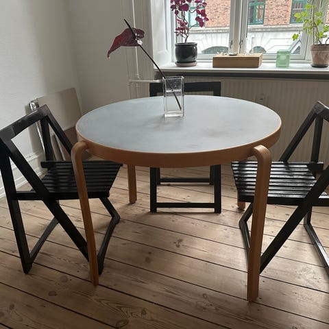 Spisebord eller skrivebord bøg med grå linoleum Magnus Olesen.