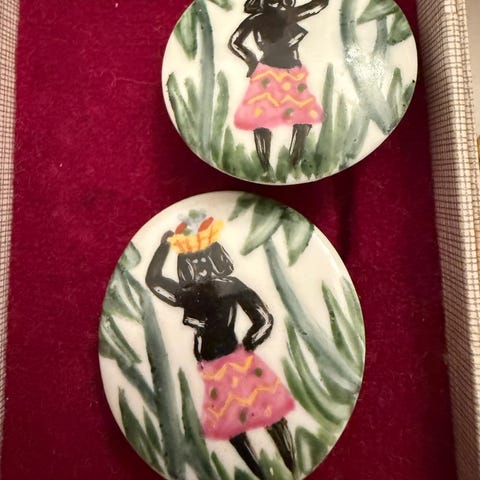 Øreringen består af en guldkrog og en dråbeformet sten med striber, samt en lille kugleperle. Den samlede længde er 4,5 cm.