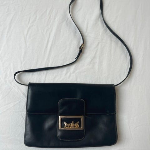 Justerbar skulderrem/hank samt en aftagelig lang rem. Lidt slidt på siderne ved hanken (ses på billede 2)
