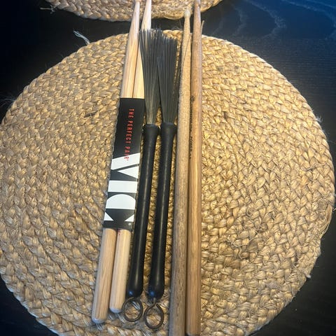 Vic Firth trommestikker i træ med naturfarvet finish. Sættet består af to par trommestikker med rund trætip, velegnet til brug på trommesæt eller øvepad. Tryk på skaftet angiver model og producent. Egnet til trommeslagere på forskellige niveauer, til både øvning og spil med band.