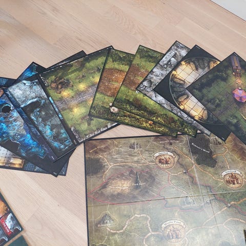 The Destinies system offers a fully story-driven, app-supported, RPG-like board game experience, without the need for a game master. Each scenario depicts a part of a vivid world, full of dark stories, epic NPCs and mysteries to solve. Each player takes the role of a hero on a quest to fulfill their destiny. Each destiny is a final goal of the character and has at least two, completely different paths to victory, composed of branching series of quests. Players compete with each other to push the world towards their own destiny."