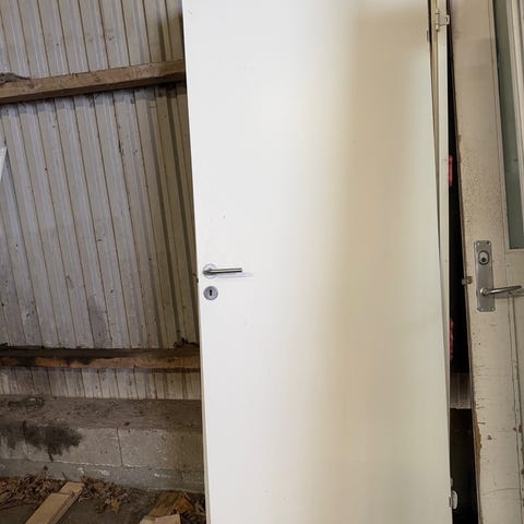 Indvendig dør i hvid med tilhørende karm. Døren har klassisk fyldningsdesign med tre felter og er velegnet til brug inde i boligen, f.eks. i værelser, gang eller kontor. Leveres med karmdele og beslag som vist på billederne.