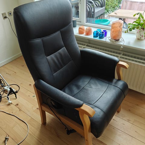 Dejlig læder lænestol, med elektrisk justerbar funktion.