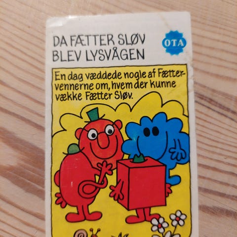 Lille udfoldeligt hæfte med Roger Hargreaves's Fættere figurer.