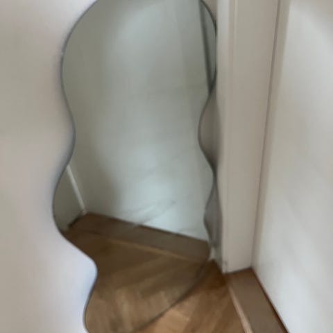 IKEA-spejl i smalt og bølgeformet design. Spejlet kan monteres på væggen.