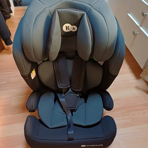 Kinderkraft autostol. Autostolen har høj ryg og sidebeskyttelse samt polstret sæde og ryglæn. Egnet til brug i bil med bilens sikkerhedssele. Farven fremstår som mørk/neutral på billedet. Velegnet til børn, hvor der ønskes støtte til hoved, ryg og sider under kørsel. Brugt til dreng fra 5 til 8 år.