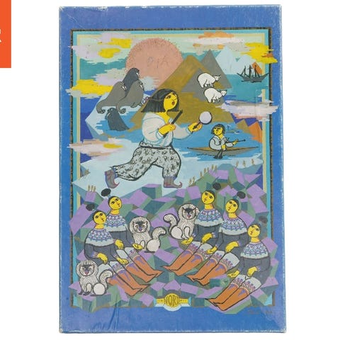 Bjørn Wiinblad puslespil med farverigt motiv af et romantisk par i naturen og en båd i baggrunden, tegnet til Irma. Puslespillet har et detaljeret, eventyrligt motiv i karakteristisk Wiinblad-stil med mange små elementer og figurer. Velegnet til samlere af Bjørn Wiinblad-design og til puslespilsentusiaster, der ønsker et dekorativt motiv, som også kan indrammes efter samling.