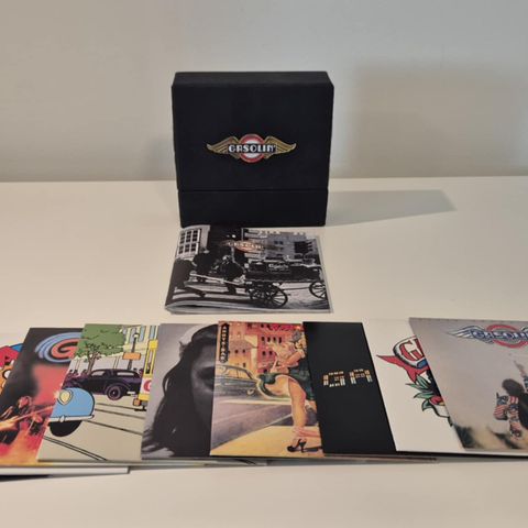 Gasolin’ CD bokssæt med flere albums samlet i en boks. Boksen indeholder en række af Gasolin’s udgivelser, hver i sit eget CD-cover, opbevaret i en stofbetrukket boks med Gasolin’-logo på fronten. Velegnet til samlet opbevaring og afspilning af Gasolin’-albums i CD-format.