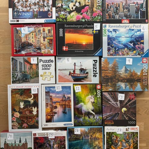 Billede 1) Puslespil med 500 brikker 40 kr. pr. stk. Puslespil med 1000 brikker 45 kr. pr. stk.